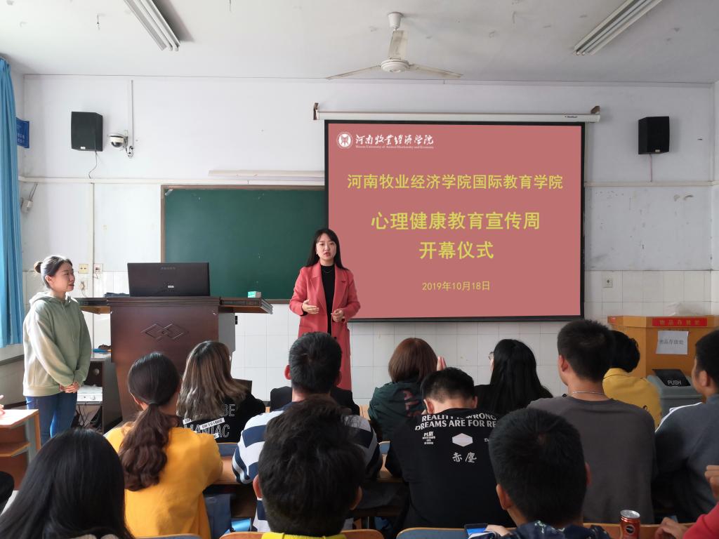 为进一步扎实推进beat365官网大学生心理健康教育工作,提高大学生的心理素质,帮助新生快速适应、了解大学生活,明确大学学习的目标和理想,促进大学生的身心健康,宣传普及心理健康知识,深入开展心理健康教育,beat365官网于2019年10月17日下午1:30在A203教室开展以“健康青春你我,奉献伟大祖国”主题心理健康周活动开幕式。
