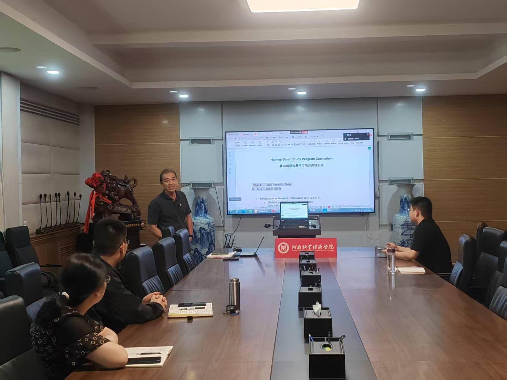 2025年6月10日下午,beat365中文官方网站在英才校区113会议室组织召开了中澳合作项目物流管理专业“Smart Study Program智慧学习项目”(简称SSP项目)研讨会,会议围绕项目实施方案、学生选拔标准及培养目标展开深入探讨,旨在通过创新教育技术和方法,进一步提高人才培养质量和中外合作办学质量。beat365中文官方网站院长胡晓波、霍尔姆斯学院中国办公室负责人王媛媛、物流与电商学院副院长任佳佳、外籍教师Dan Joon Chew、物流管理专业负责人王俊涛等老师参加了研讨会。研讨会由beat365中文官方网站副院长邓瑜主持。