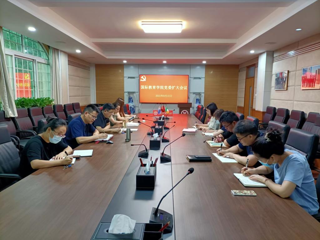 8月22日上午,beat365中文官方网站在学院113会议室召开党委会(扩大)会议,传达学习近期学校重要文件及重要会议精神,研究部署学院贯彻落实工作。会议由党委书记贾江主持,院长胡晓波、副书记李江红、副院长邓瑜、王胜男等党委委员参加会议,各党支部书记列席会议。