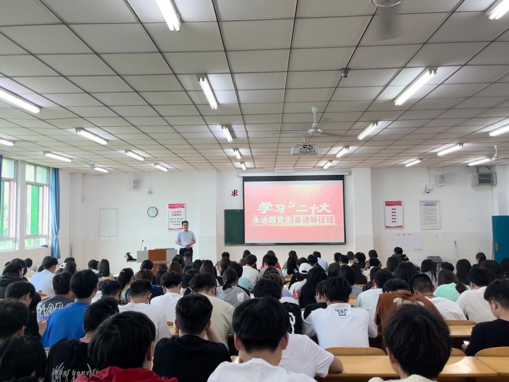 胡晓波指出,青年学生要认真学习习近平新时代中国特色社会主义思想和党的二十大精神,牢记习近平总书记对青年的嘱托,能够以“自讨苦吃”的精神,主动在困难中坚守初心使命,坚持用所学的理论知识去指导实践,善于将个人奋斗的“小目标”融入国家发展“大蓝图”,做到志在苦中砺、才在苦中长、功在苦中建,让青春在全面建设社会主义现代化国家的火热实践中绽放绚丽之花。他强调,全体人员要将学习党的二十大精神与学院发展相结合,从理论学习中不断汲取奋进力量,紧紧围绕学院发展需要,敢于担当、主动作为、守正创新、勇毅前行,以实际行动推动学院各项事业高质量内涵式发展,把学习贯彻习近平新时代中国特色社会主义思想和党的二十大精神体现在立德树人的生动实践上。