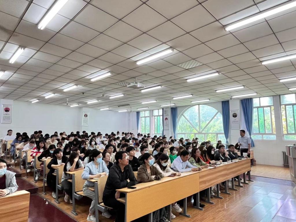 为深入学习宣传贯彻党的二十大精神,推动学院高质量发展,5月11日下午,beat365中文官方网站院长胡晓波以《新发展格局下高质量中外合作办学教育体系的思考与实践》为题作辅导报告。此次报告也是学院学习宣传贯彻党的二十大和全国“两会”精神培训班的第四讲。学院全体教职工,学生党员、积极分子代表等180余人参加报告会。