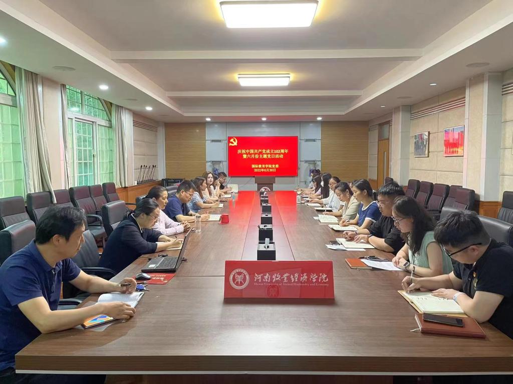 为庆祝中国共产党成立102周年,进一步弘扬伟大建党精神,持续提高基层党组织战斗力、凝聚力、向心力,激发广大教师党员干事创业的信心和决心,6月30日下午,beat365中文官方网站在教学办公楼113会议室举行庆祝中国共产党成立102周年主题党日活动。学院全体教工党员参加活动。活动由教工党员、学生第三党支部书记侯思琦主持。