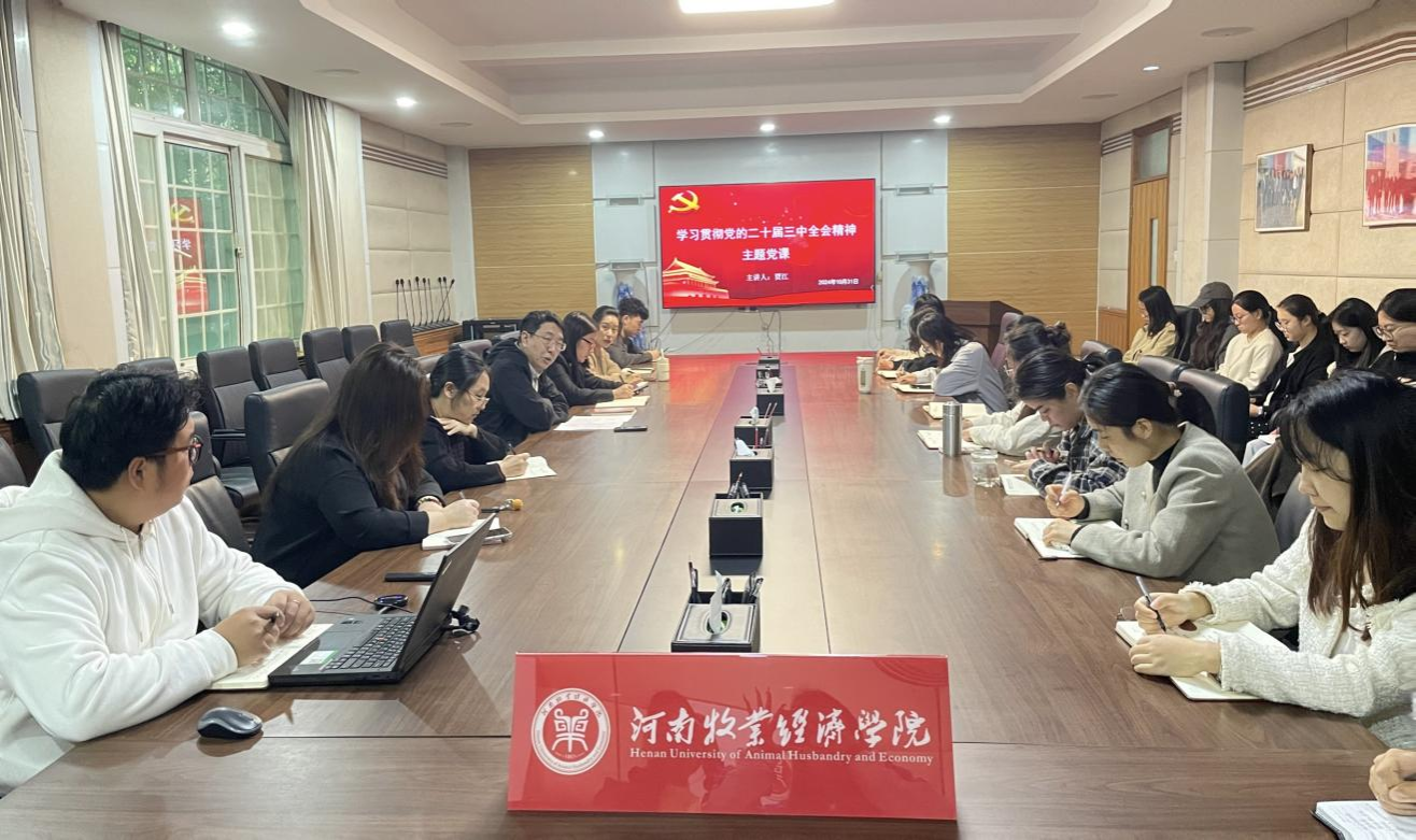 贾江书记从党的二十届三中全会的主题和主要内容、历史意义、重大影响以及如何结合实际学习贯彻全会精神等几个方面进行了详细的阐述。同时对下一步学院如何学习好、宣传好、贯彻好党的二十届三中全会精神提出了明确的要求。他指出,深入学习贯彻党的二十届三中全会,一是要广泛学习宣传,在学“深”上下功夫。坚持线上线下相结合,通过党委会、党委理论学习中心组、“三会一课”和主题党日等多种形式,发挥学院公众号、微信群等网络阵地作用,广泛开展形式多样的主题宣传,营造学习好、宣传好、贯彻好全会精神的浓厚氛围。二是要深入提高认识,在悟“透”上求真知。充分认识到党的二十届三中全会精神的重大意义,把学习宣传贯彻党的二十届三中全会精神作为当前和今后一个时期的重大政治任务。三是聚焦深度融合,在做“实”上见真效。全体师生要学深悟透弄懂,全面准确领会全会精神实质,要立足职能职责,以钉钉子精神抓好各项工作任务落地落细,为今后学院的发展和进步贡献自己的力量。
