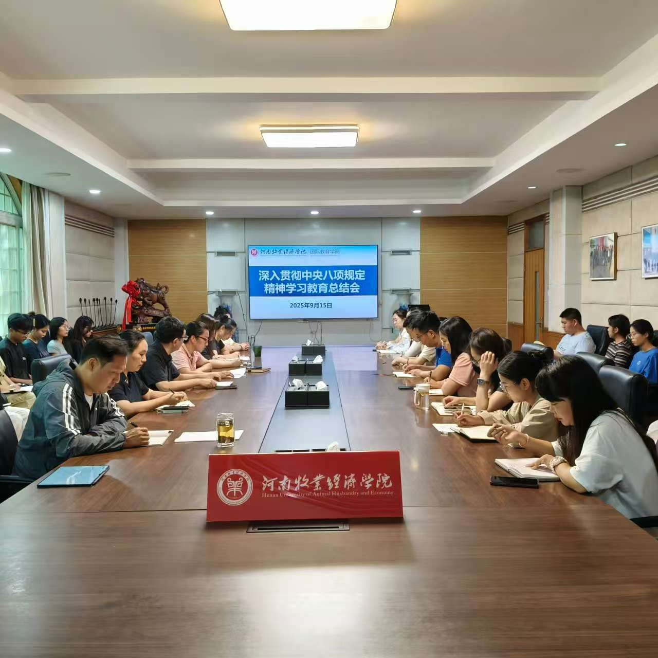 9月15日下午,beat365中文官方网站召开深入贯彻中央八项规定精神学习教育总结会议,传达学习习近平总书记关于深入贯彻中央八项规定精神学习教育的重要指示和中央党的建设工作领导小组会议精神,总结beat365中文官方网站学习教育工作,强调贯彻落实要求。院党委书记贾江主持会议并做总结报告,院全体教工党员、学生党员代表及入党积极分子参加会议。