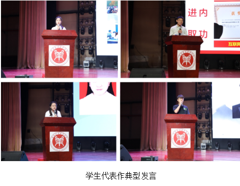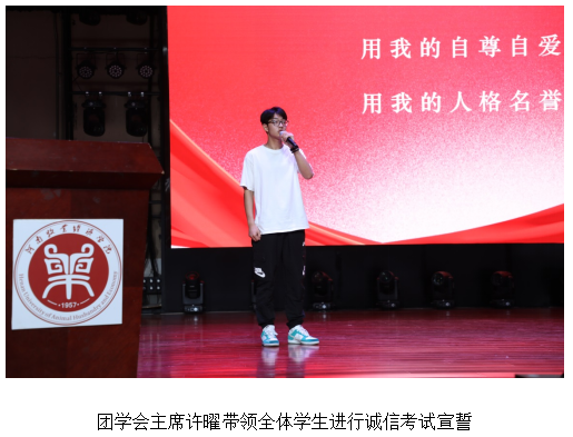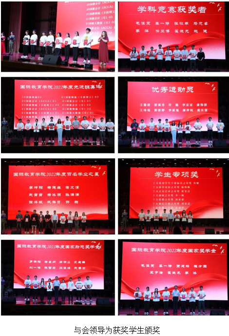 大会在乐器表演《最初的梦想》青春激昂的旋律中拉开了帷幕。学院领导班子成员为受表彰的文明班级、学科竞赛获奖者、先进班集体、优秀运动员、“百名学业之星”、“十大优秀学生标兵之星”等校级专项奖获得者、国家励志奖学金及国家奖学金获奖代表进行颁奖。这些先进集体和优秀学生是beat365官网青年学生的榜样,他们不忘初心、励志笃行,激励着同学们在奋斗的道路上砥砺奋进、再创辉煌。铿锵有力的朗诵《青春 奋斗 梦想》,朝气蓬勃的舞蹈《生命之舞》,细腻而深情的歌曲《如愿》,充满希望和憧憬的合唱《夜空中最亮的星》,澎湃着青春的激情,昂扬着奋进和向往。先进班集体代表,来自21国教物流(卡罗理工)02的罗明阳,学科竞赛获奖代表,来自20国教物流(卡罗理工)02班的秦一铮,国家奖学金获奖代表,来自20国教会计(ACCA)01班的毛佳雯以及2023届优秀考研毕业生代表,来自19国教会计(ACCA)02班的陈新宇等四位优秀学生先后分享了自己在大学期间的思想认知、专业学习、工作生活、创新创业、社会实践、志愿服务等方面的经历及心得感悟,鼓励全院学生要坚守理想,要敢于有梦、勇于追梦、勤于圆梦。他们用生动感人的励志事迹,抒写了新时代青年学子的情怀和担当,彰显了国教院青春活力,在砥砺奋进的过程中不懈追求,也为全院学生树立了标杆和榜样。最后,团学会主席许曜作为领誓人,带领全体学生进行诚信考试宣誓,此环节让学生深受教育,学生们纷纷表示一定以诚实的态度、积极的行动参加考试,用真实的成绩为一学期的努力画上圆满的句号。