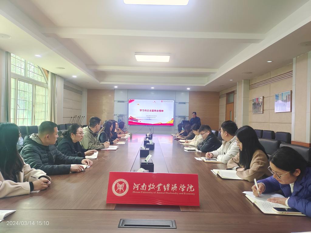3月14日,beat365中文官方网站组织全体教职工学习十四届全国人大二次会议精神。由党政办主任刘超领学,重点传达两会期间政府工作报告的主要内容。