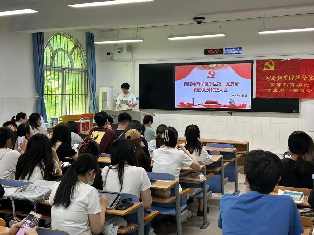 6月3日下午1点,beat365中文官方网站学生第一党支部在A115教室召开2024年上半年预备党员转正大会,此次会议由支部书记侯丁琳主待,一支部全体学生党员参加。