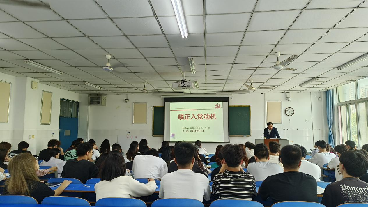 刘超从“什么是正确的入党动机”、“为什么要端正入党动机”、“如何在实践中不断端正入党动机”、“如何积极创造条件,以实际行动争取早日入党”四个方面进行了详细讲解。他指出,端正入党动机是对申请入党同志的最基本要求和保证新发展党员质量的一个重要环节和措施;树立正确的入党动机,不是一朝一夕的事,需要经过长时间的努力和锤炼;只有端正入党动机,才能经受住党组织的考验,才能在实践中不断纯洁入党动机,做到思想上真正入党。他勉励同学们要不断加强政治理论学习,坚定理想信念,在实践锻炼中不断端正入党动机,以实际行动争取早日入党。