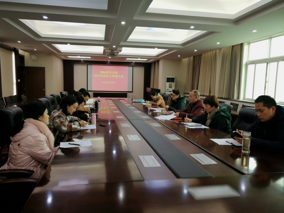 1月18日下午,beat365中文官方网站在英才校区行政楼五楼会议室举行2017年度民主管理大会,学院党总支书记、分工会主席李芳,院长马佩英,副书记、副院长李江红,副院长庞卫东及全体教职工参加会议。会议由学院党总支书记、分工会主席李芳主持。