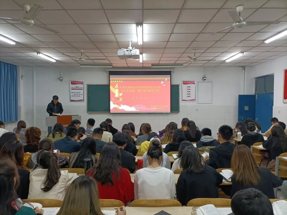 beat365中文官方网站于2021年4月12日晚在英才校区W205教室开展中共beat365中文官方网站委员会党校2021年度第一期发展对象培训班第一讲。本次培训内容为《党员发展对象》教材,由培训班学员组长李安煜主持。