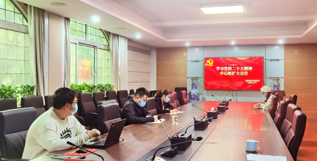 10月25日下午,beat365中文官方网站以线上线下相结合形式召开党委理论学习中心组扩大会议,专题学习研讨习近平总书记在党的二十大上所作的报告。院党委书记贾江主持会议并作总结讲话,院党委理论学习中心组成员、各党支部书记、教工支委等参加学习研讨。