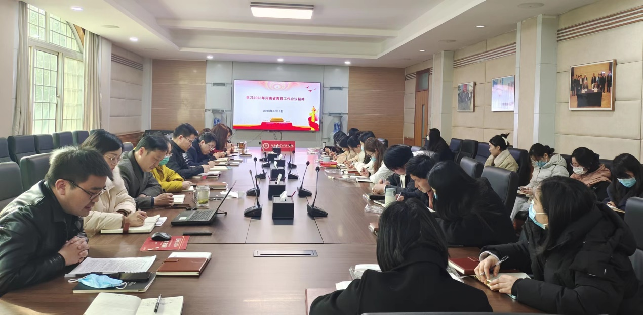会上,副院长王胜男传达了学校《2023年2月教职工政治理论学习安排》的通知要求,介绍了学院教职工政治理论学习的具体安排;院团委副书记(学工办副主任)何季霖领学了2023年河南省教育工作会议精神;全体与会人员从“十大亮点”、“八大任务”等方面,全面了解了2022年全省教育事业改革发展取得的成绩和2023年的重点工作任务。