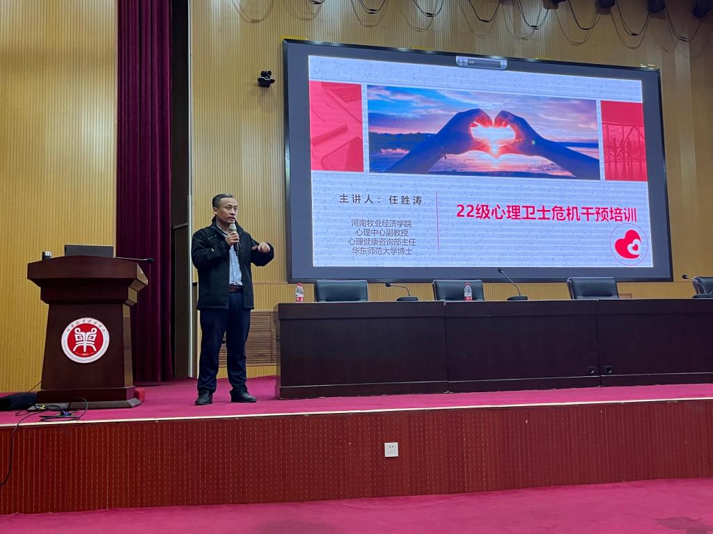 任老师从认识校园危机、心理健康排查重点关注的风险点、排查流程及上报路径、出现危机事件时的工作要点等四个方面介绍了大学生心理健康标准,心理委员、宿舍长在学校心理健康教育工作中的重要作用以及开展此次培训的目的意义;深入浅出地对常见心理问题的分类及如何判定鉴别进行了阐述,并重点围绕角色定位、工作理念、工作态度、工作方法等方面对心理委员、宿舍长如何开展好每月心理健康他评、学生异常现象反馈上报、突发事件处理等工作进行了系统讲解。他指出,心理委员、宿舍长是学校心理危机干预体系中的重要一环,是学校心理健康教育力量的重要补充;大家应明确自身职责,切实做好心理健康知识的宣传普及,心理异常问题的发现上报等工作,引导学生养成理性平和的心态,保障校园平安和谐。