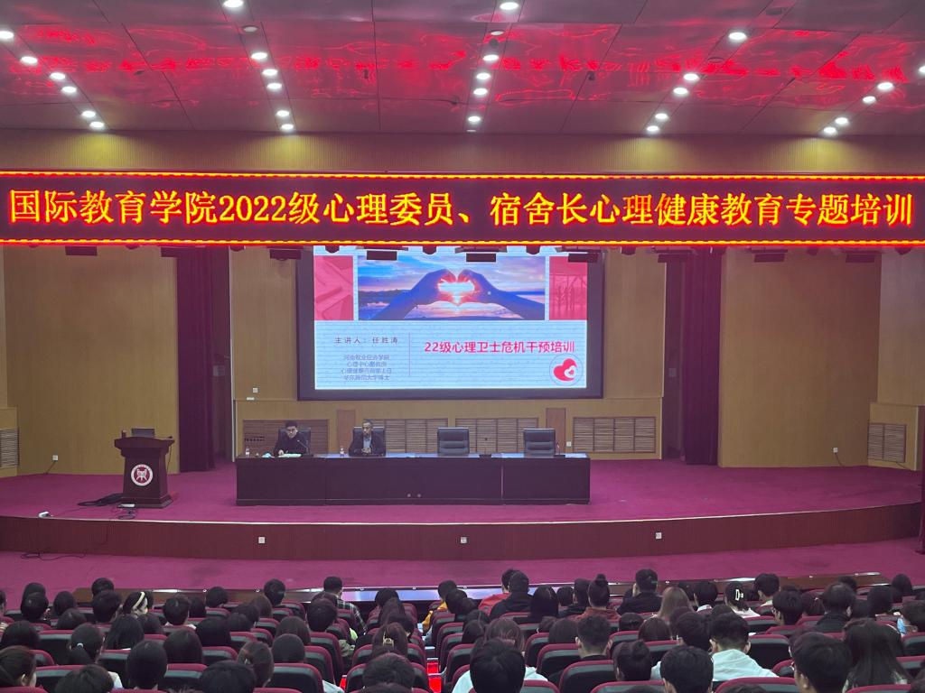 为充分调动和发挥班级心理委员、宿舍长在心理健康教育工作中的积极性和主动性,进一步加强学生心理信息员队伍建设,健全学院心理健康教育工作体系,3月6日晚上,beat365中文官方网站在英才校区学术报告厅组织全体2022级心理委员、宿舍长开展心理健康教育专题培训。此次培训由校心理健康教育中心心理健康咨询部主任任胜涛博士主讲,院团委副书记(学工办副主任)何季霖主持。
