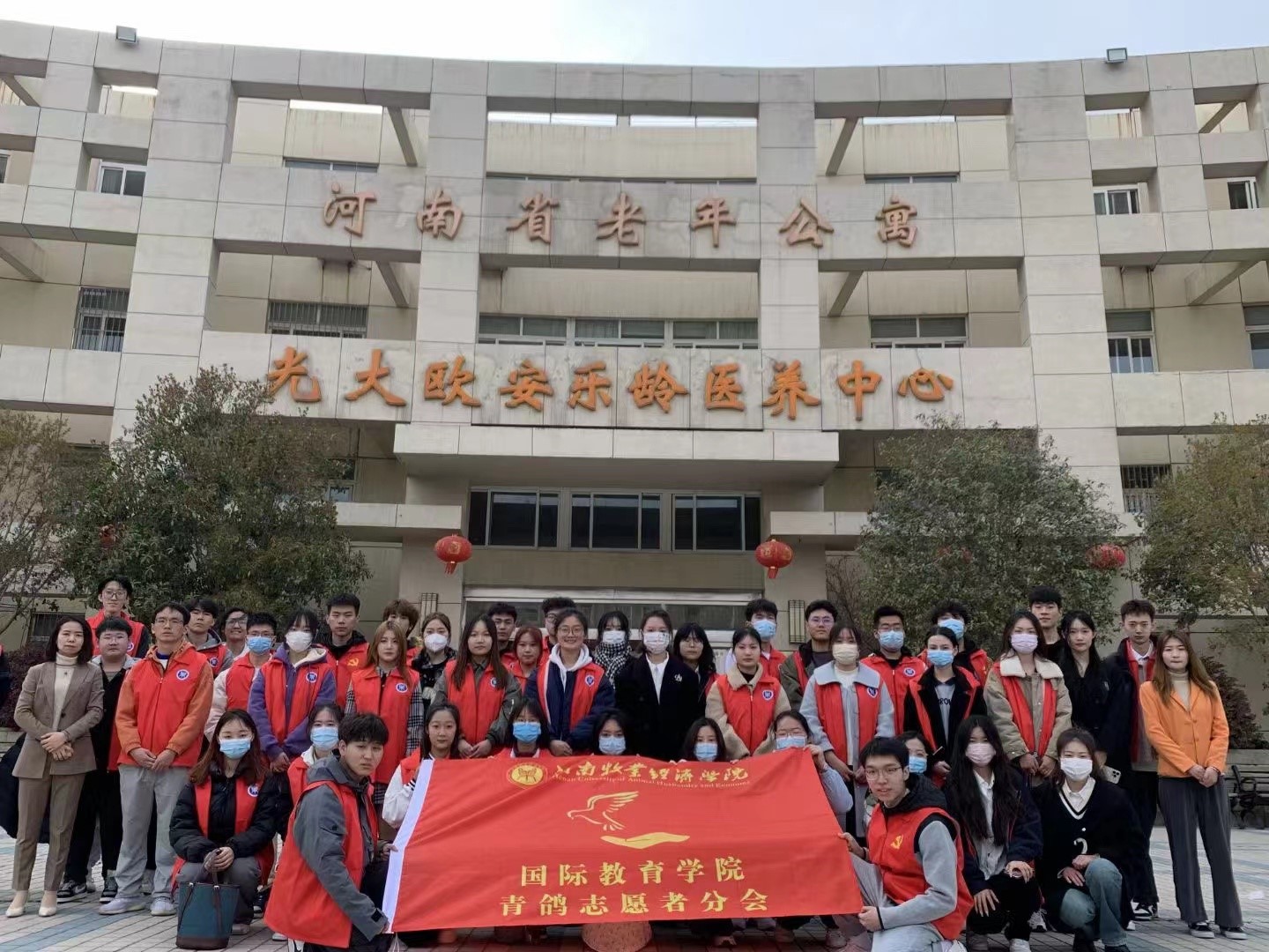 为引导广大青年学生传承中华优良传统,崇尚尊老、敬老、助老的新风,弘扬志愿服务精神,3月18日,beat365中文官方网站团学会生活权益部在河南省老年公寓开展了“爱驻夕阳,关爱老人”的志愿服务活动。beat365中文官方网站青鸽志愿者分会在全院范围内进行招募,组成了43人的志愿者队伍,大家怀着诚挚之心参与到活动中去,给予了老人呵护与关怀。