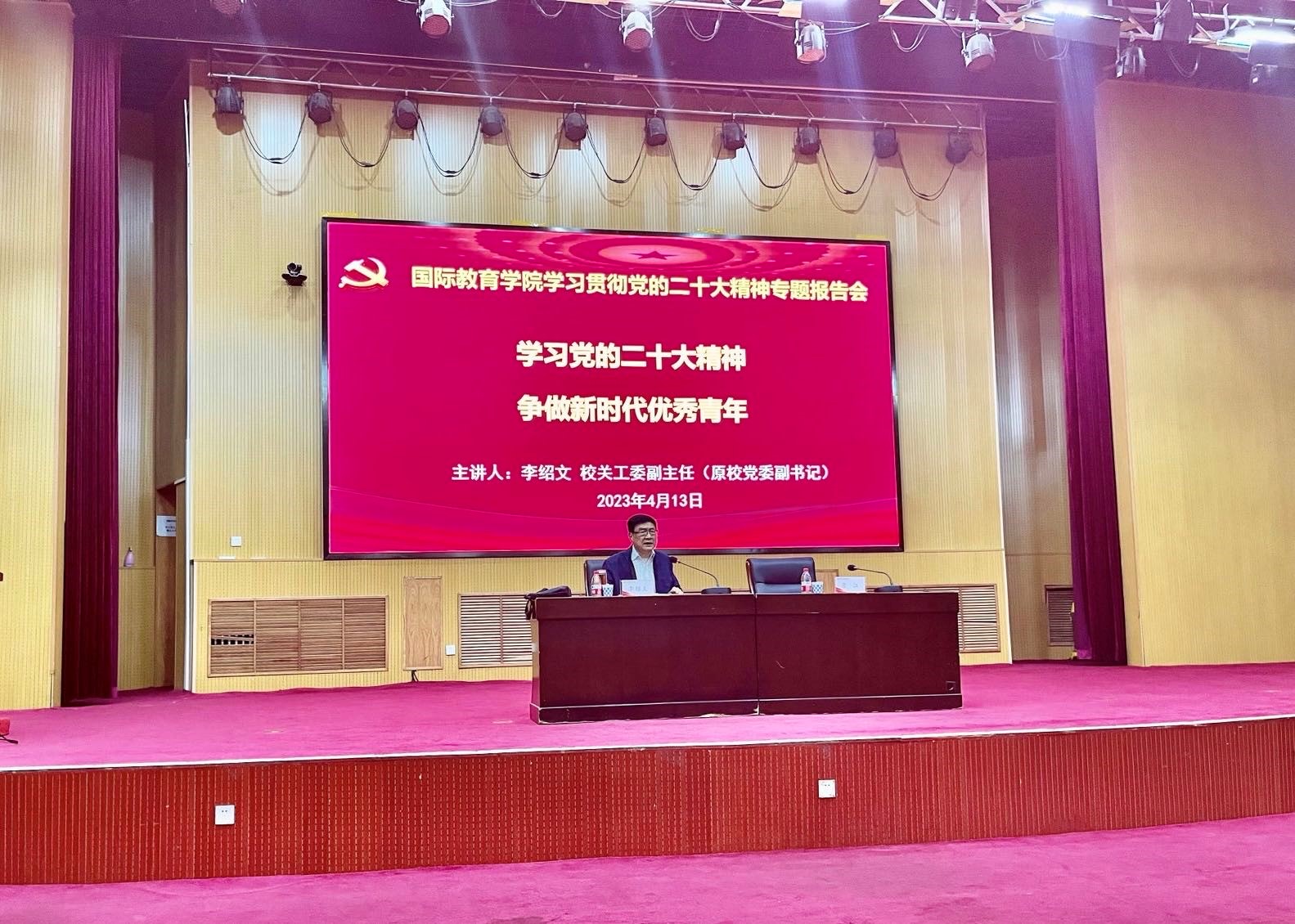 李绍文以自创诗歌《天地颂》开篇,从南湖船头一盏灯,开天辟地放光明;二十八年艰辛路,感天动地奋斗情;天安城楼一声呼,改天换地世界惊;百年踔厉再奋进,晴天绿地欣向荣;喜迎党的二十大,顺天应地新长征;习近平总书记领导咱,欢天喜地迎复兴六个方面,全面回顾了中国共产党百年奋斗的光辉历程和辉煌业绩,展现了中国共产党人顽强拼搏、不怕牺牲的革命斗争精神,系统宣讲了新时代十年伟大变革的深刻内涵和重大意义,深刻诠释了习近平新时代中国特色社会主义思想的核心要义。他号召广大青年学生要认真学习贯彻党的二十大精神,牢记习近平总书记嘱托,坚定理想信念,筑牢精神之基,厚植爱国情怀,矢志不渝跟党走,以实现中华民族伟大复兴为己任,增强做中国人的志气、骨气、底气。整场报告主题鲜明、内容丰富,脉络清晰、论述透彻,既有思想高度、理论深度,又有很强的针对性和感染力,对于深刻理解、全面把握党的二十大精神实质,具有十分重要的意义。